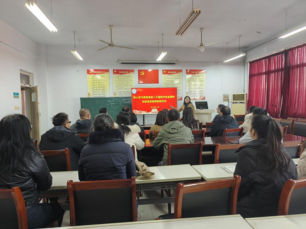 院长重点解读了全会精神的核心要义,强调坚持和加强党的全面领导是中国特色社会主义事业发展的根本保证,必须把党的领导贯穿办学治校全过程。她结合学院实际,提出要进一步完善党委统一领导、党政分工合作的工作机制,确保党的教育方针在基层落地生根。同时,要深化教育领域综合改革,构建高质量教育体系,推进新工科建设,深化产教融合、科教融汇,培养适应化学、化工、材料、环保等领域发展需要的高素质创新人才。