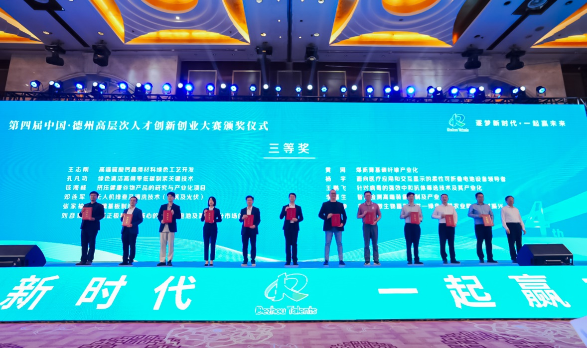 9月27日至28日,以“逐梦新时代·一起赢未来”为主题的第四届中国·德州高层次人才创新创业大赛总决赛、颁奖仪式暨京德科技人才合作交流大会在德州市隆重举行。经过初赛、决赛和排位赛激烈角逐,伟德国际1946源于英国王志刚教授团队参赛项目“高端硫酸钙晶须材料绿色工艺开发”获的创新组三等奖,王烟霞副教授团队参赛项目“糠醛渣木质素的绿色提取工艺开发”获的创新组优胜奖,取得学院在该类赛事新突破。