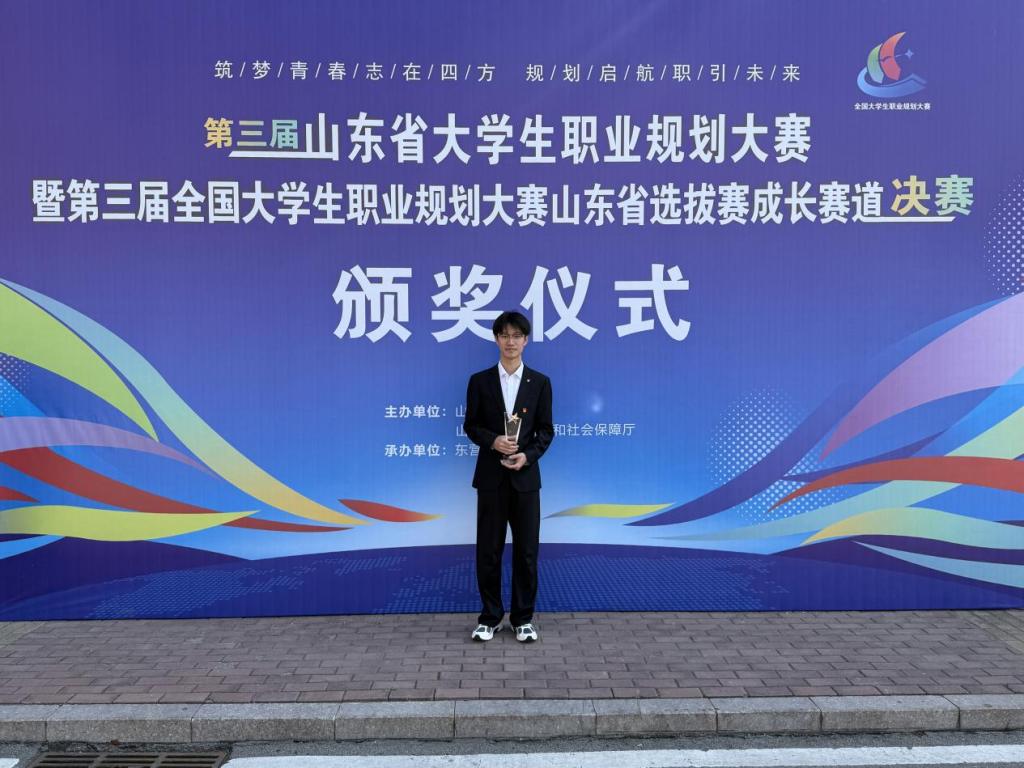 近日,第三届山东省大学生职业规划大赛暨全国大学生职业规划大赛山东省选拔赛圆满落幕。伟德国际1946源于英国2023级李宗鑫同学凭借清晰的职业定位、扎实的专业认知与出色的现场发挥,在成长赛道中脱颖而出,成功斩获铜奖,为学院再添殊荣,充分展现了化院学子清晰的职业规划意识与昂扬的精神风貌。