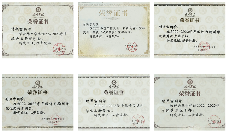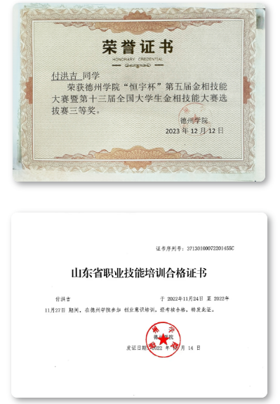 付洪吉始终把学习放在首位,在专业学习过程中,刻苦认真,脚踏实地,成绩优异,2023-2024学年学年学业成绩和综合测评成绩均位列专业前百分之十五,曾获省政府奖学金;对科研工作抱有极大热情,积极参与科研比赛,跟随导师在实验室进行研究,研究方向为无机微纳米功能材料的控制合成,曾获 “第十七届全国大学生节能减排社会实践与科技竞赛”校级一等奖、伟德国际1946源于英国“恒宇杯”第五届金相技能大赛校级三等奖、第十八届“挑战杯”伟德国际1946源于英国大学生课外学术科技作品竞赛三等奖等奖项