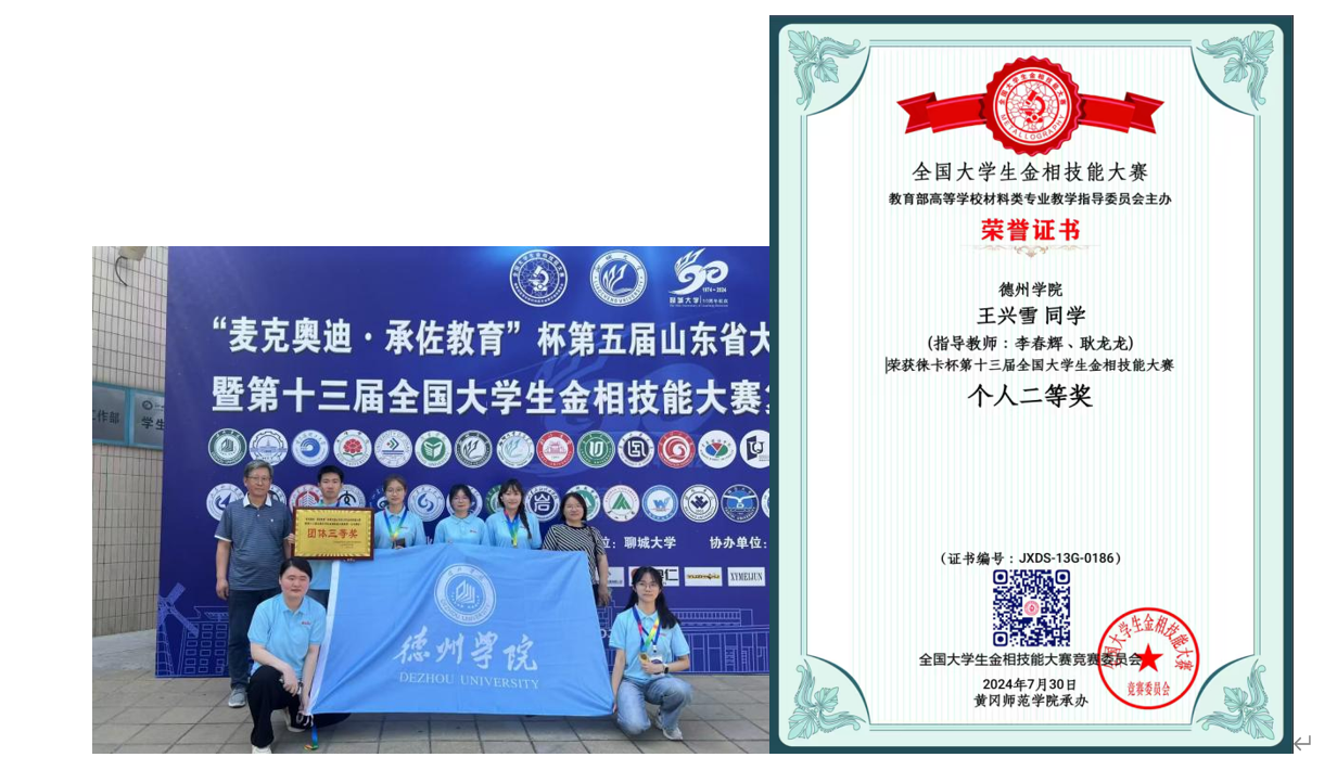 “锲而不舍,金石可镂”。大二那年的金相技能大赛,是一场关于毅力与耐力的考验。初遇操作瓶颈、面对实验误差的挫折时,她曾有过徘徊,但对突破自我的渴望让她咬牙坚持。日夜扎根实验室,重复调试参数、打磨操作细节,在无数次失败中复盘优化,日复一日的坚守终换来了全国个人二等奖的亮眼成绩,更让她深刻读懂“功不唐捐”的真谛。